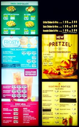 それでも、できれば低価格のメニューを! と思っても、ウェンディーズのドライブスルーは、注文スポットにしかメニューが置かれていないため、ずらりと後続車がいる場合、小心者のため焦ってコンボメニューを注文してしまうのです(作戦なのかもしれない、、、、)。