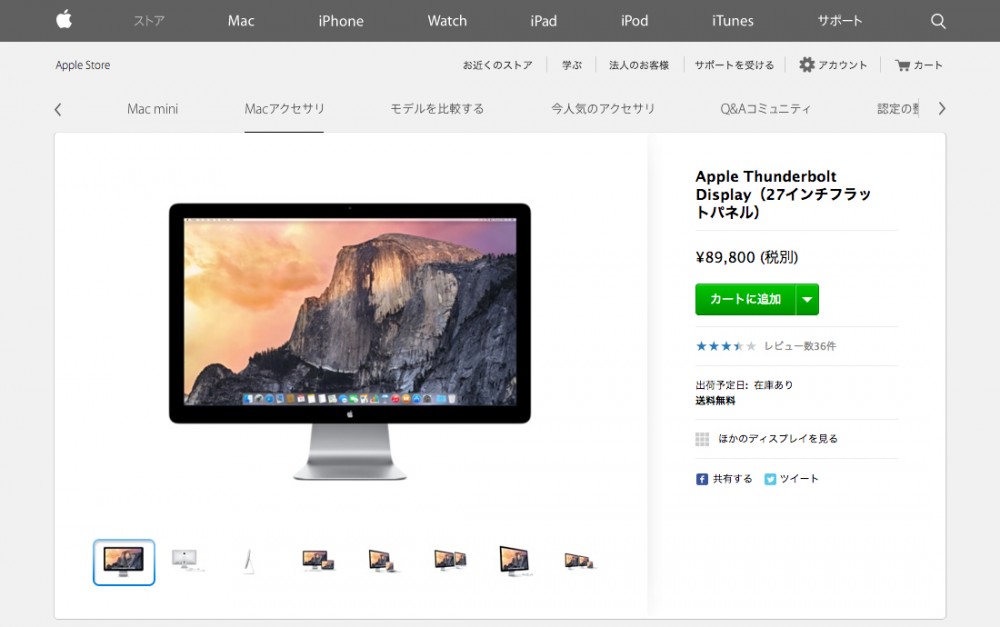 円安が進んだのにそれが価格に反映されていないからなのでしょう(それとももしかして間もなく新型(5K?)が出るとか?!)。ファクトリーアンロック(SIMフリー)のiPhone 6は、値上げし(たと思ったら販売しなくなっちゃい)ましたけど、他の商品はどうなのでしょうね。さらに円安が進んでそれでも価格が据え置きのままだと、ダンピングでアメリカ国内のユーザからモンクが出そうな価格差です。