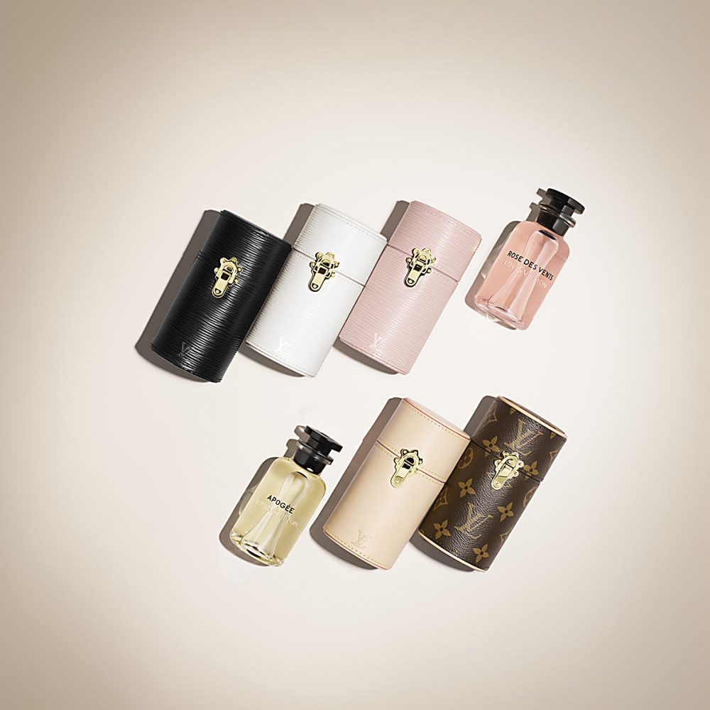 ルイヴィトンの100mL香水用トラベルケース シグニチャーモノグラムキャンバス($420.00) Épi(エピ)レザー(各$450.00/ブラック、ホワイト、ローズバレリン)
